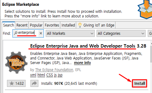 enterprise 검색 후 Eclipse Enterprise Java and Web Developer Tools 설치