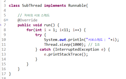 Runnable 인터페이스를 구현하는 서브 스레드 클래스를 만들어준다.