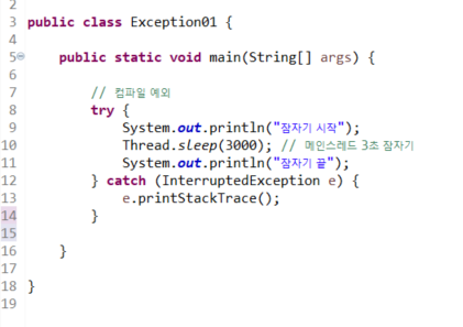 프로그래머가 예기치못한 예외의 발생에 미리 대처하는 코드를 작성하는 것으로,