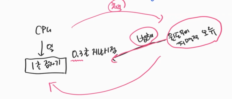 CPU는 윈도우 오류를 처리하고 다시 돌아와서 나머지 업무를 해야한다.