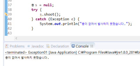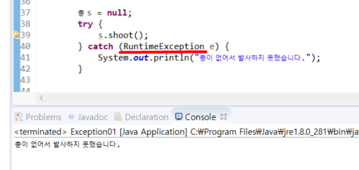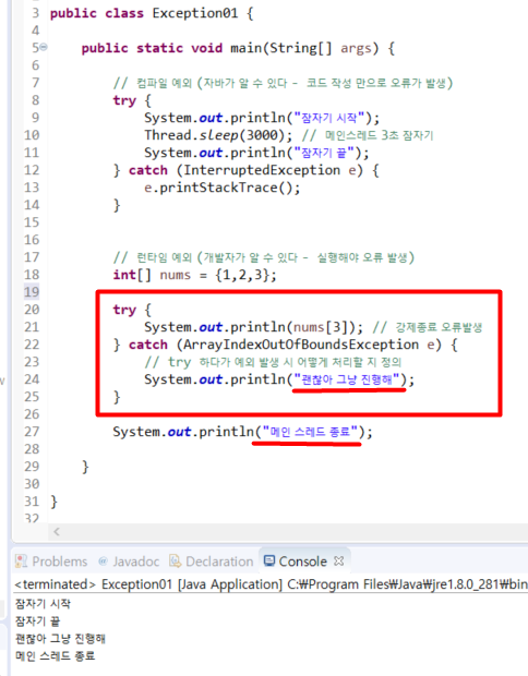 try - catch 로 잡아주면 예외를 잡을 수 있다.