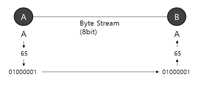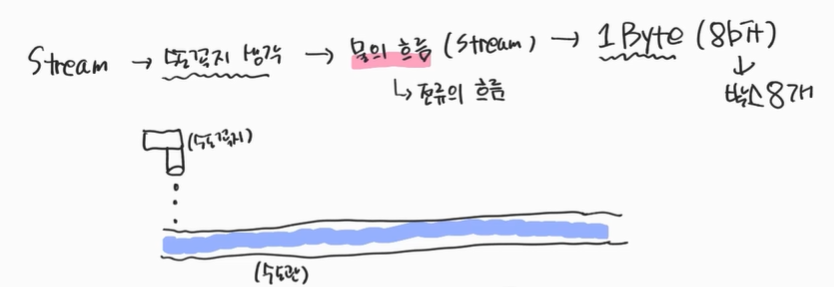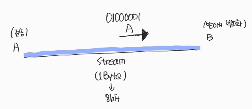 스트림은 1바이트 즉 8비트 단위로 데이터가 왔다갔다.