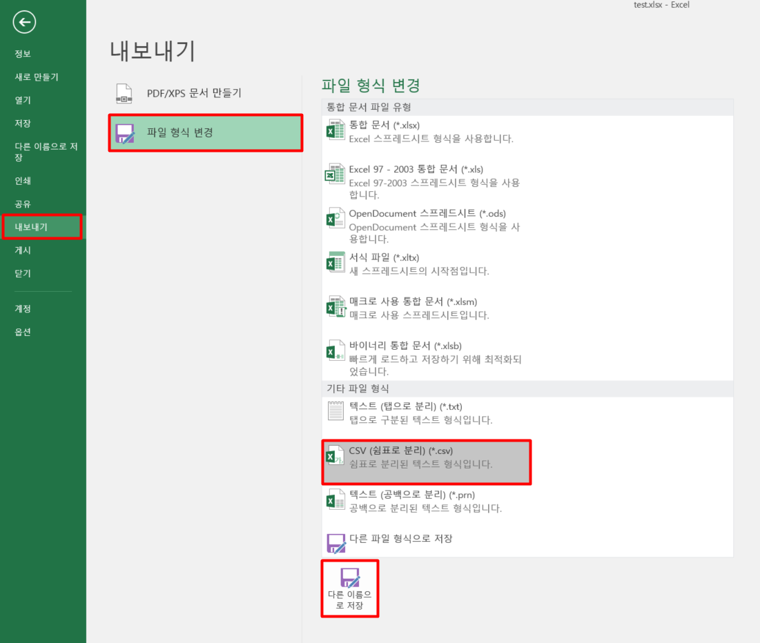 엑셀 파일을 CSV 형식으로 변환하기 (EXCEL to CSV)