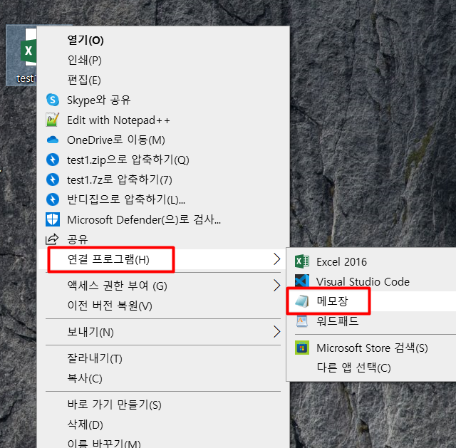 실행 중인 파일을 종료한 후 해당 파일 우클릭 - 연결 프로그램 - 메모장 선택